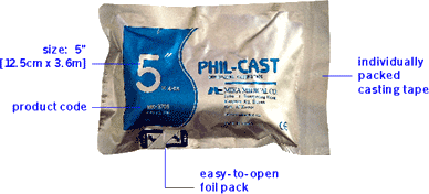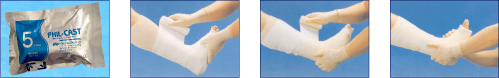 - Apply stockinette and underlaying cast padding over the wounded part, Open only one aluminum pouch at a time with gloved hands which will prevent from the resin adhering to the skin